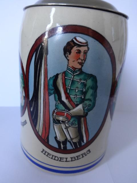 Student Stein with enamel figures of Heidelberg.