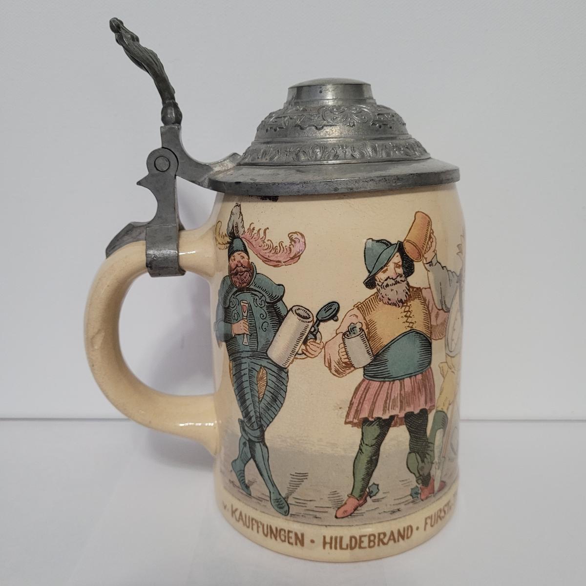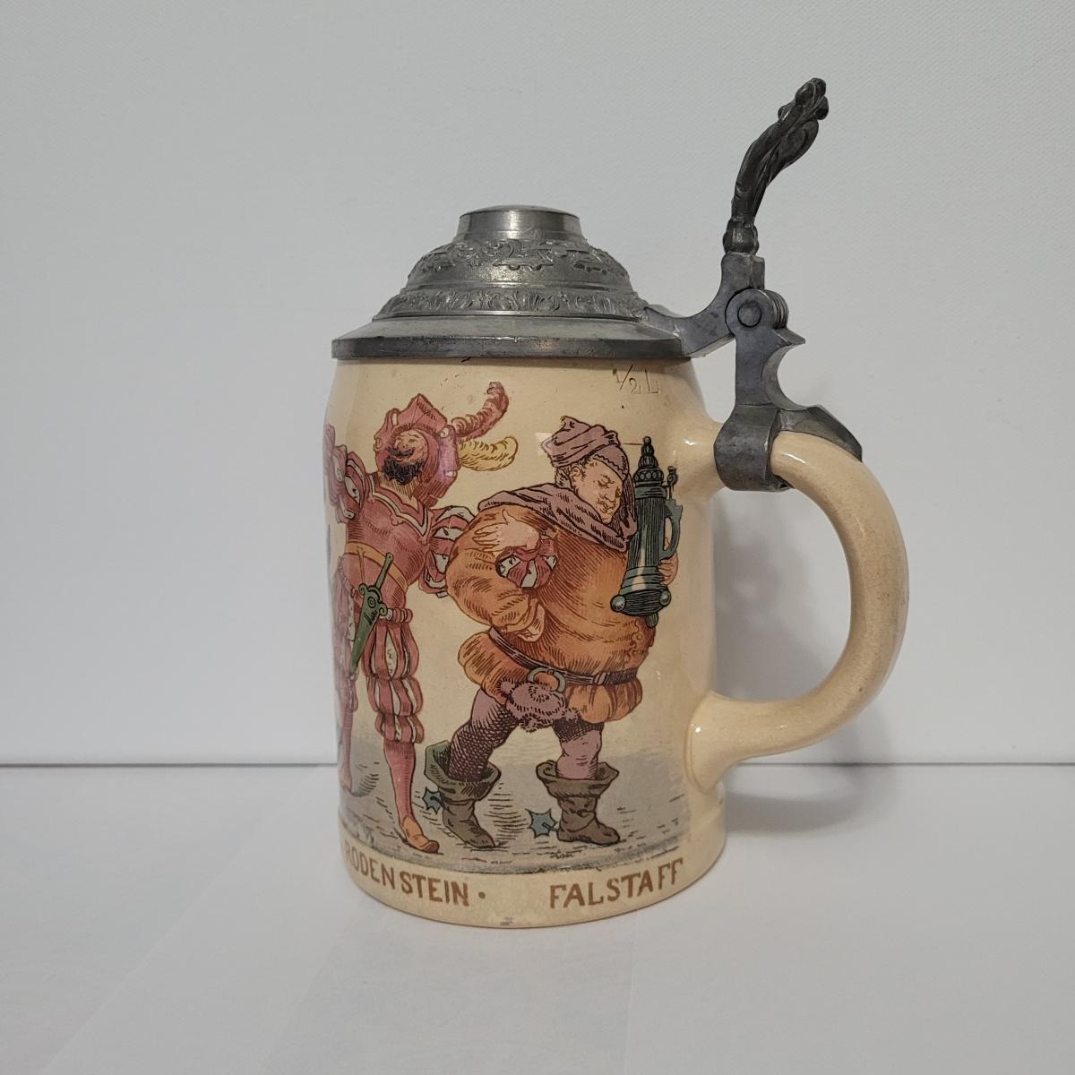 Falstaff, Hildebrand, Hadubrand, Kauffungen, Perkeo, Rodenstein and Faust von Thoren are depicted on this PUG stein.