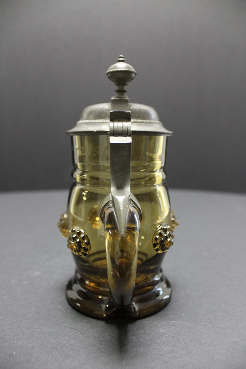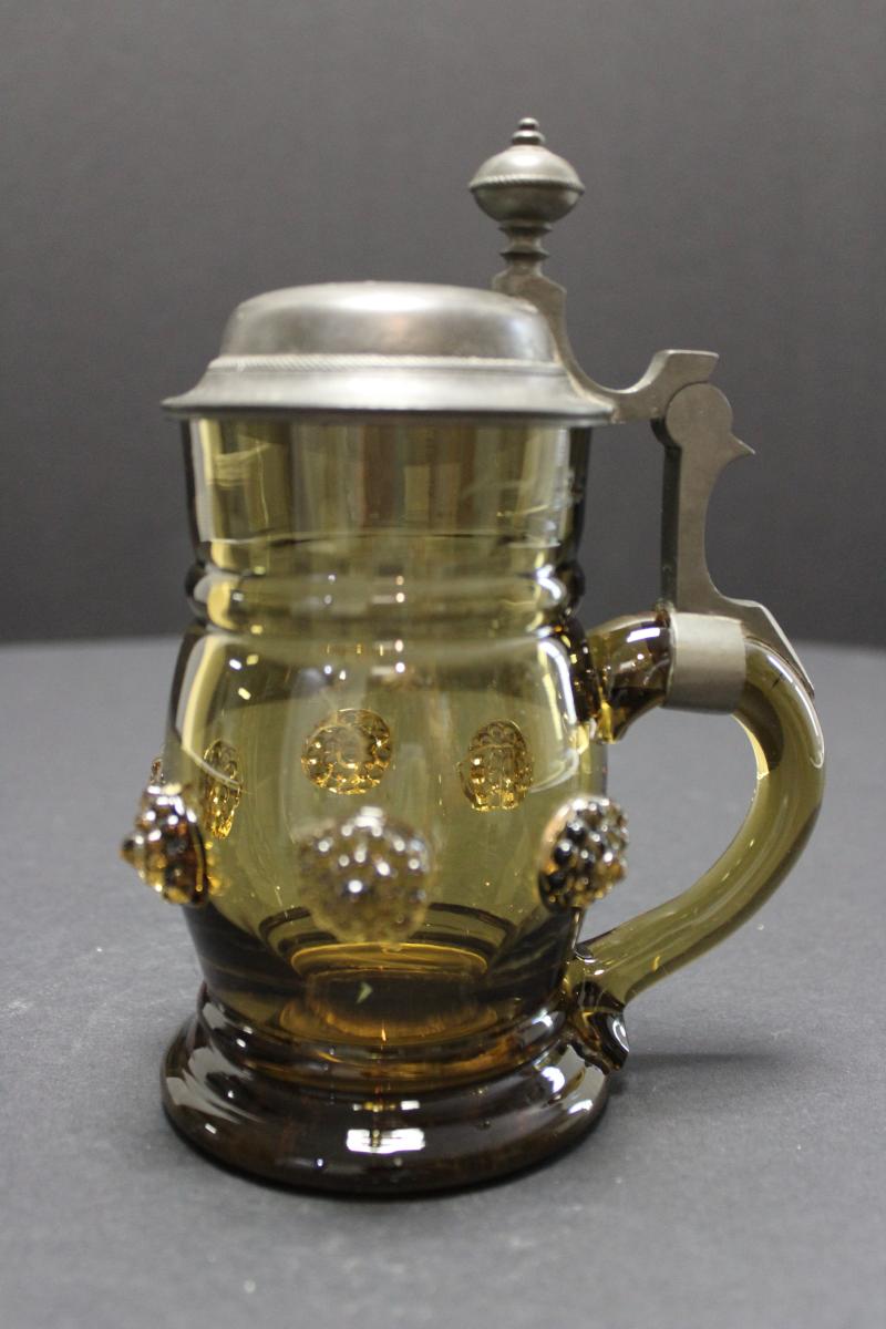 Applied "C" shaped handle sitting low on the stein.