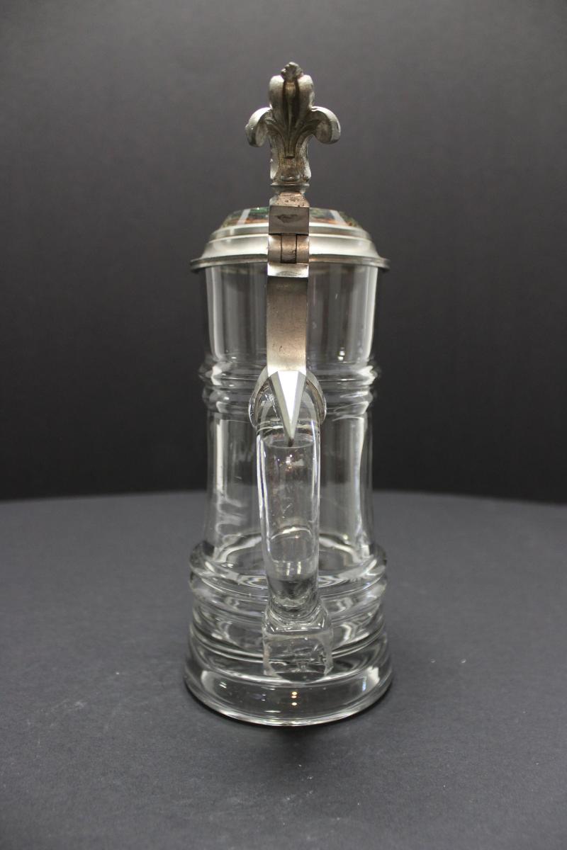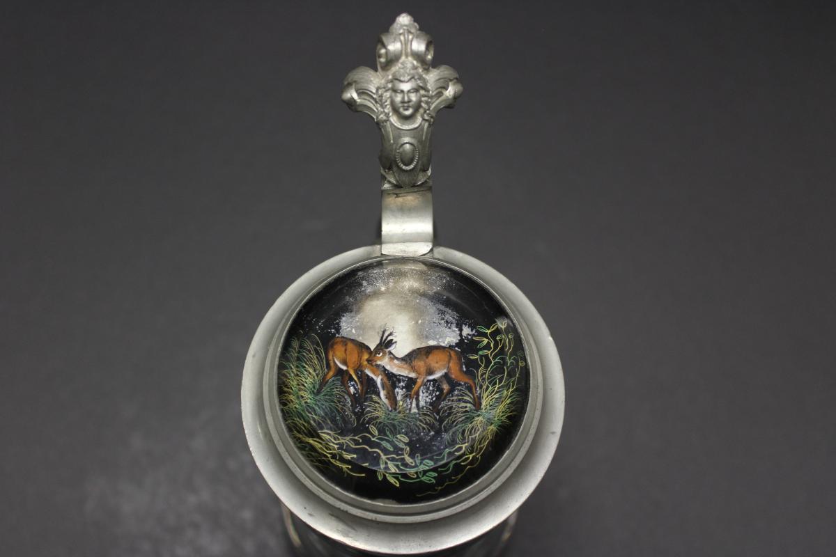 Glass lid inlay with deer scene.