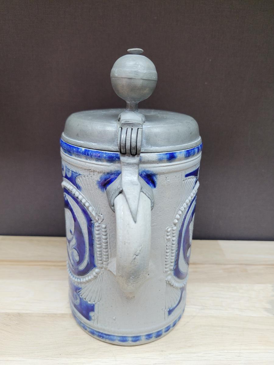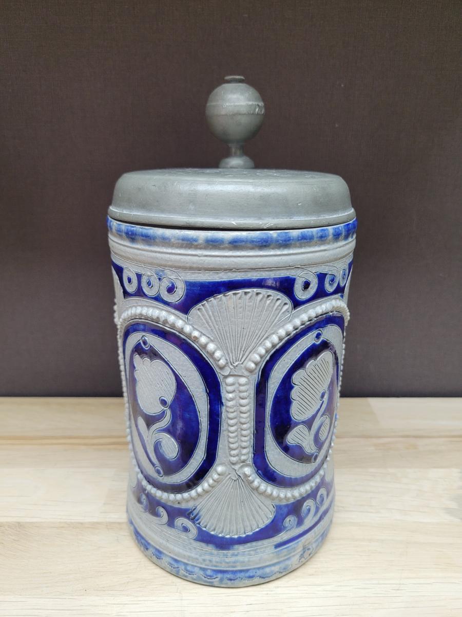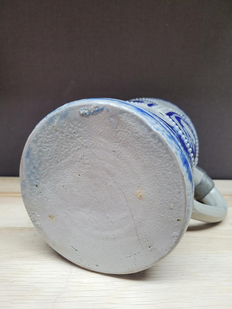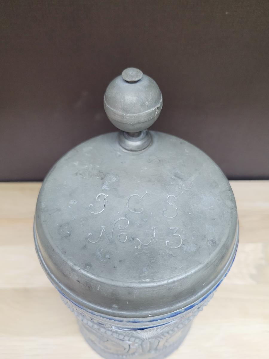 A lidded beer stein, made in the westerwald area, possibly made in the late 1700's to early 1800's.